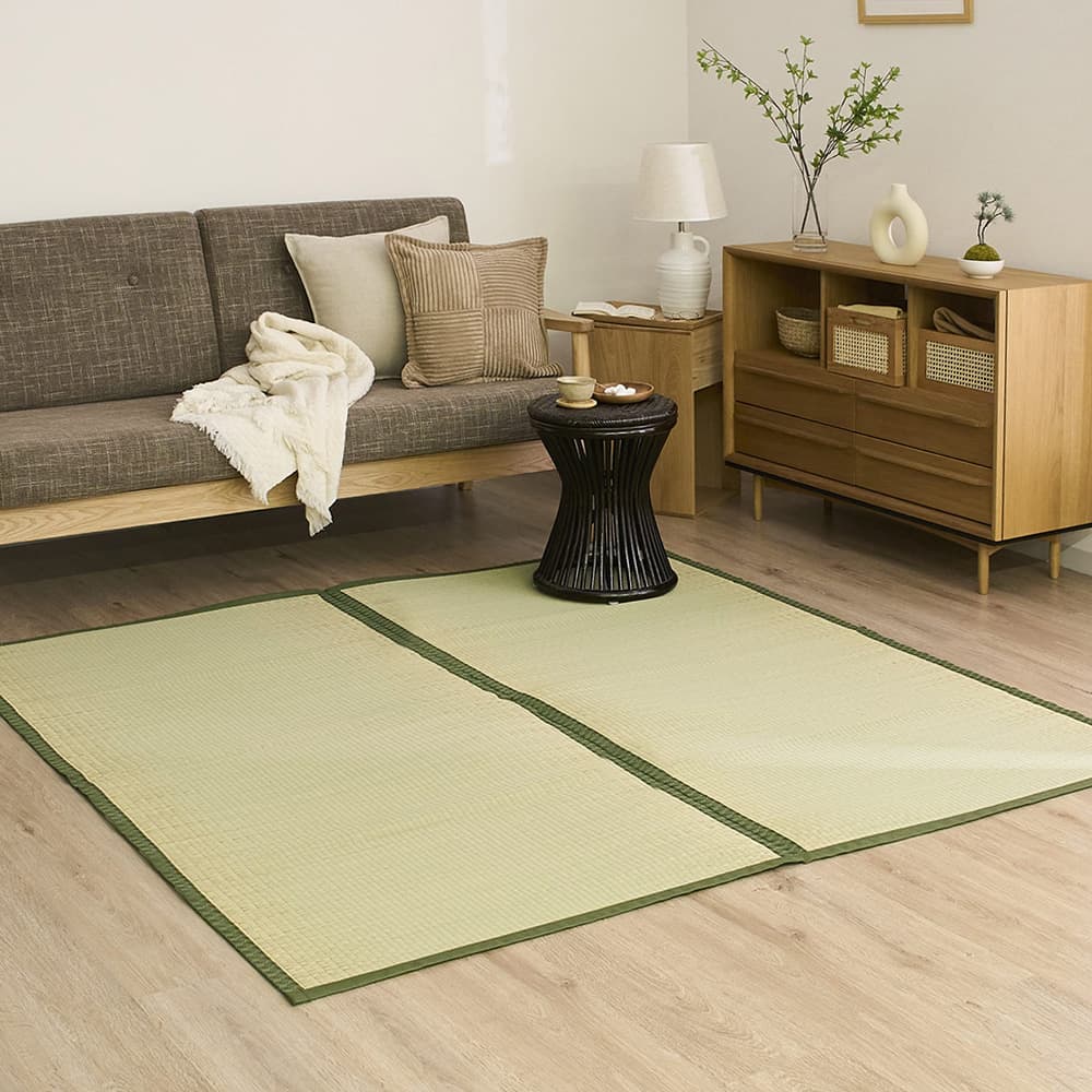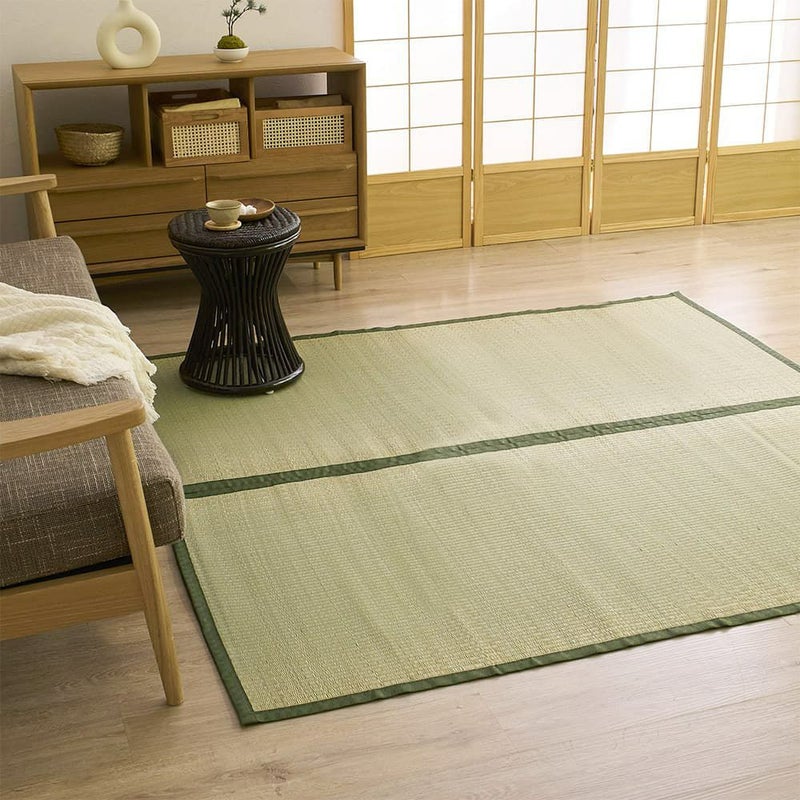 調湿効果が梅雨のじめじめ感を解消し、さらっとした肌触りが暑いお部屋の対策にも活躍するい草ラグ。