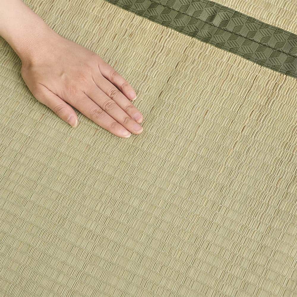 シンプルな作りで薄手軽量のい草ラグ。女性でも折りたたんで簡単に持ち運びができるので、敷くのはもちろん、収納時も扱いやすいという特徴があります。