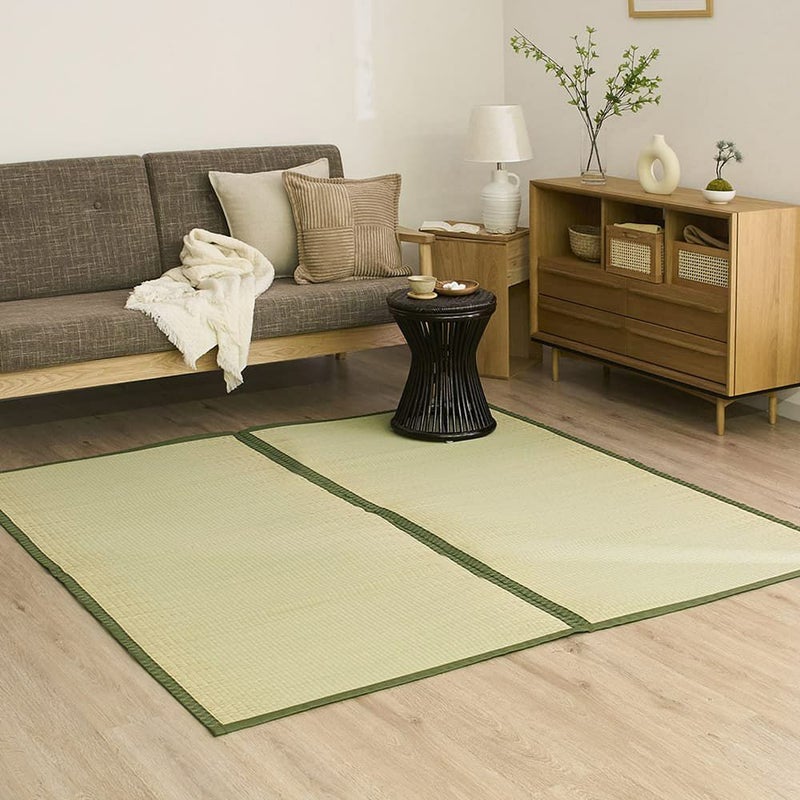 薄手でリバーシブル仕様のい草ラグなので、上敷きとしてもフローリングのラグとしても大活躍!夏の間だけサッと敷いたりと簡単に模様替えにも使えるのが嬉しいポイントなので、これ1枚持っておけば間違いなしの万能ラグです。
