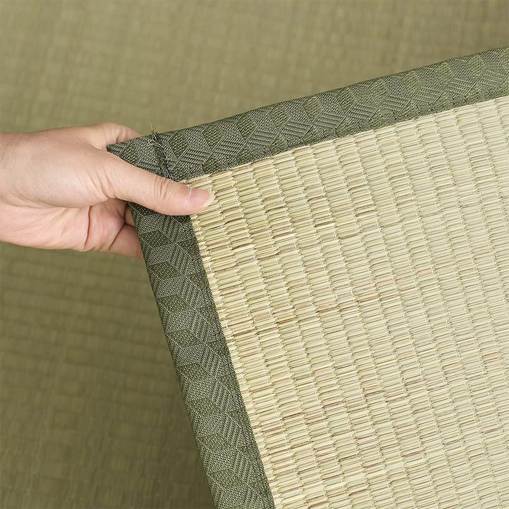 九州産のい草は一本一本が太く、表皮が厚いので弾力性があり、耐久性に優れています。日本の清らかな水と栄養たっぷりの土壌で育てたこだわりの国産い草の上質な肌ざわりをお楽しみください。