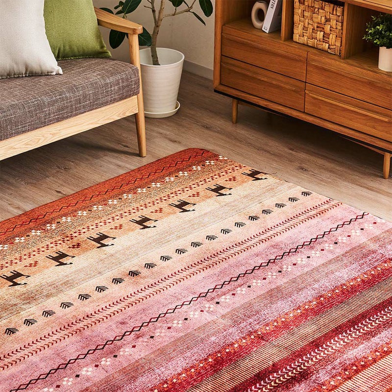 カラフルなギャッベ柄の中でも、じんわり絶妙なグラデーションで織り上げられた「ラディ」夕焼けの景色を思わせる1枚を敷けば、お部屋の中に雄大な草原が広がるようです。いつもの空間、いつもの毎日ももっと伸びやかに◎