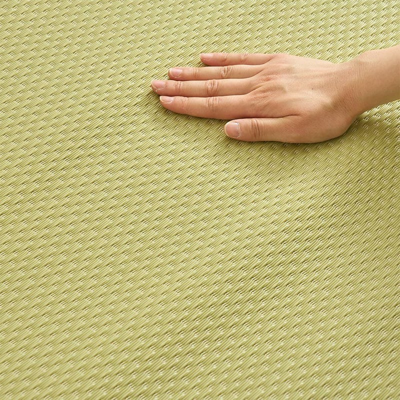 細いストロー状のポリプロピレン素材で、まるで本格い草のような風合いに仕上げました。お部屋に馴染むシンプルなデザイン