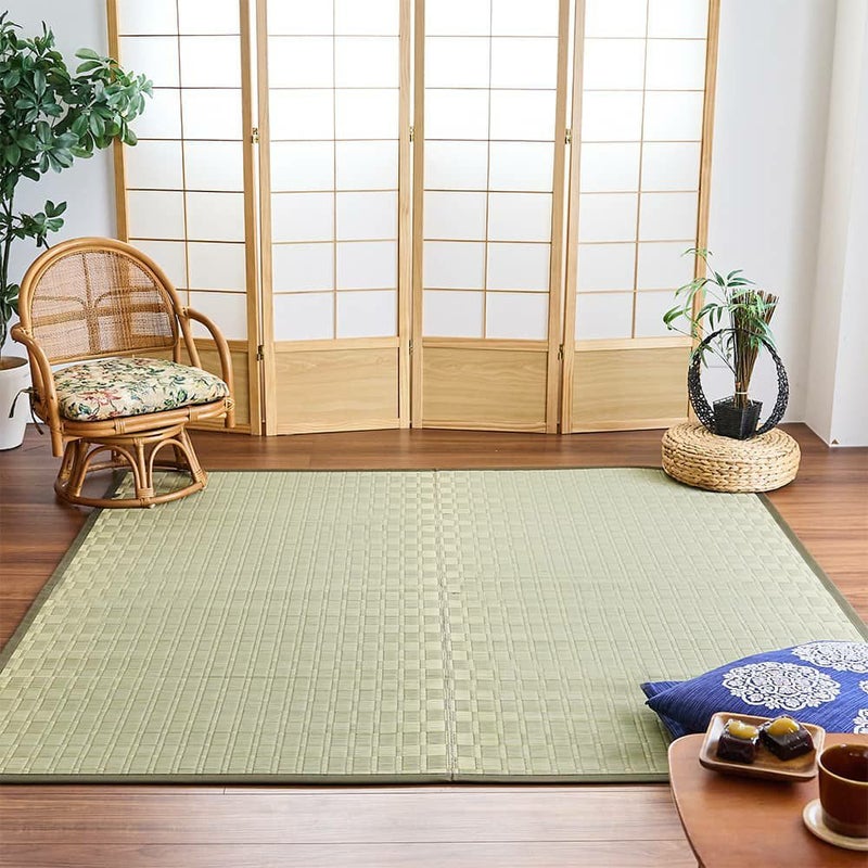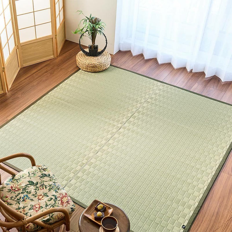 表地が国産い草100%、縁も綿100%なので湿気がこもりにくく、さらっとした使い心地!大人はもちろん、汗をかきやすいお子様のお昼寝スペースにも最適です。暑い夏は、清涼感のあるい草ラグで快適に過ごしましょう。