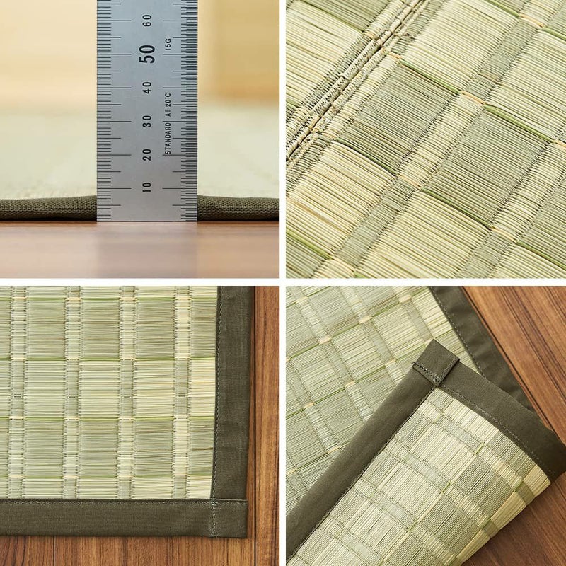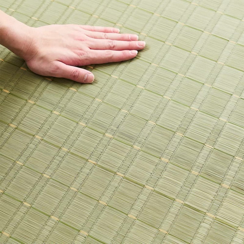 い草には空気の自然浄化作用、湿度の調節作用などがあります。しかも、良質な太く長いい草を高密度に織り込んでいるので、高い耐久性と素足に心地よいクッション性が保たれます。使用するうちに黄金色に変化する味わいも自然素材ならではの魅力です。