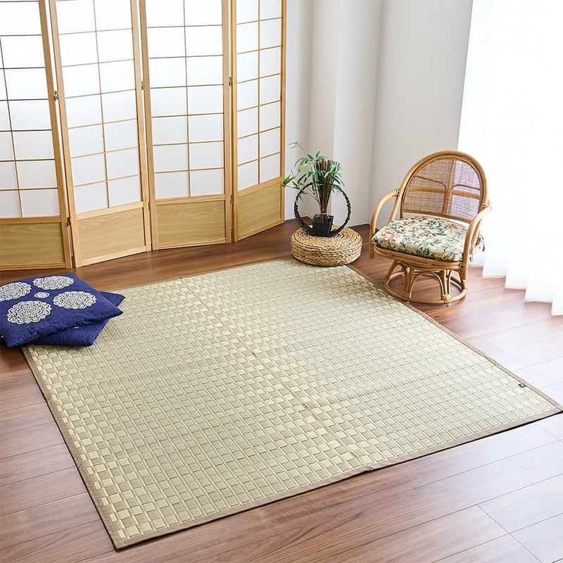 調湿効果が梅雨のじめじめ感を解消し、さらっとした肌触りが暑いお部屋の対策にも活躍するい草ラグ。