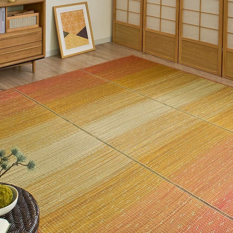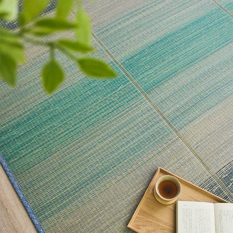 様々な色に染めたい草を組み合わせてグラデーションのデザインを繊細に表現したい草ラグ。い草をふんだんに使って丁寧に織り上げられた表面はなんとも美しい仕上がりに。高い制菌効果も魅力のい草ラグ「ノクリア」を敷いて、夏を気持ちいい季節にしませんか?