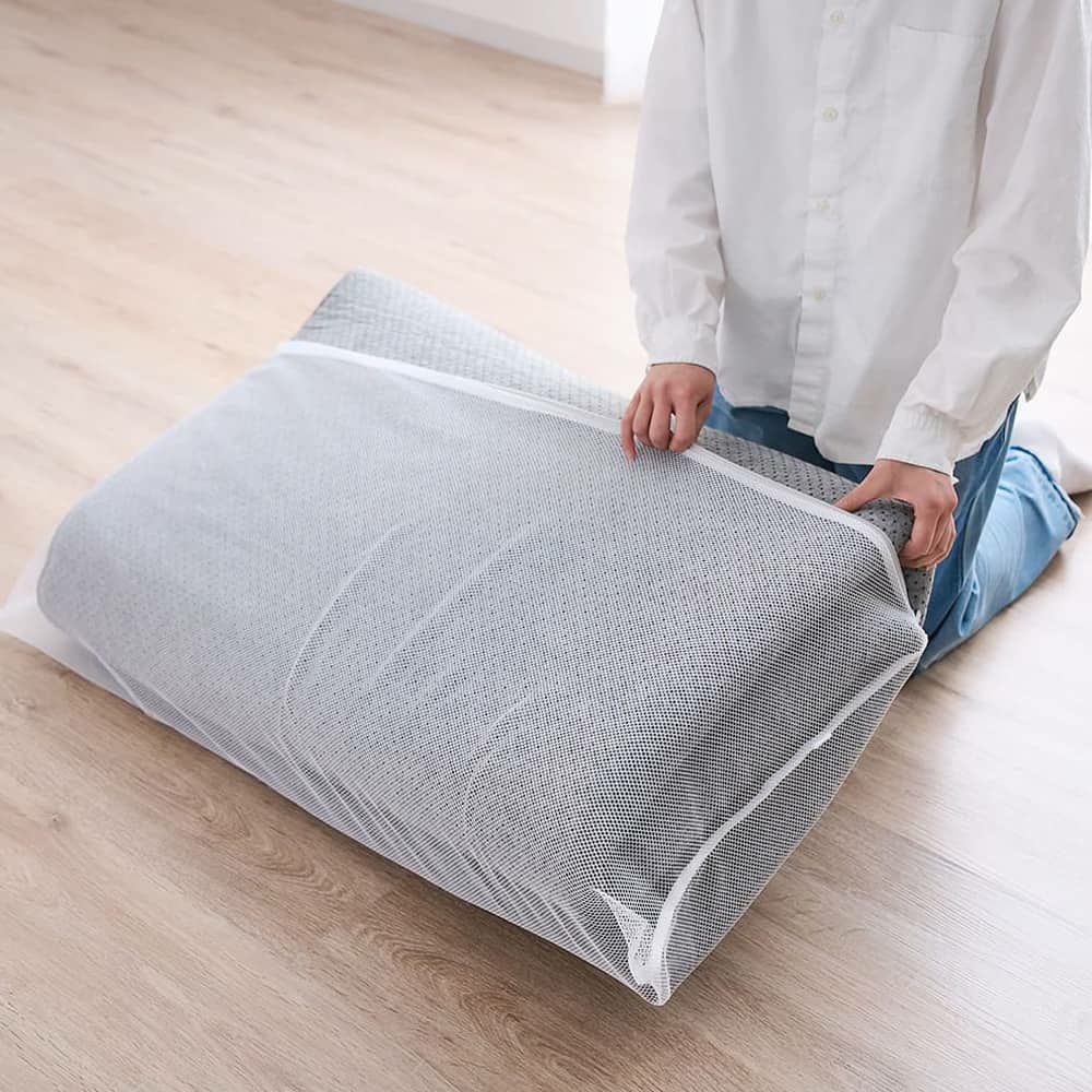 洗濯ネットに入れれば、ご家庭の洗濯機で洗えるウォッシャブル仕様です。薄手で軽量なので干しやすく、乾きも早いのが嬉しいですね。汚れてしまっても簡単にお手入れできるので、いつでも清潔をキープできます。