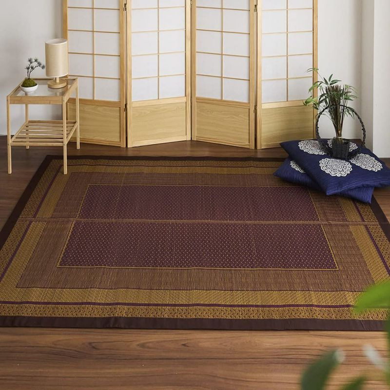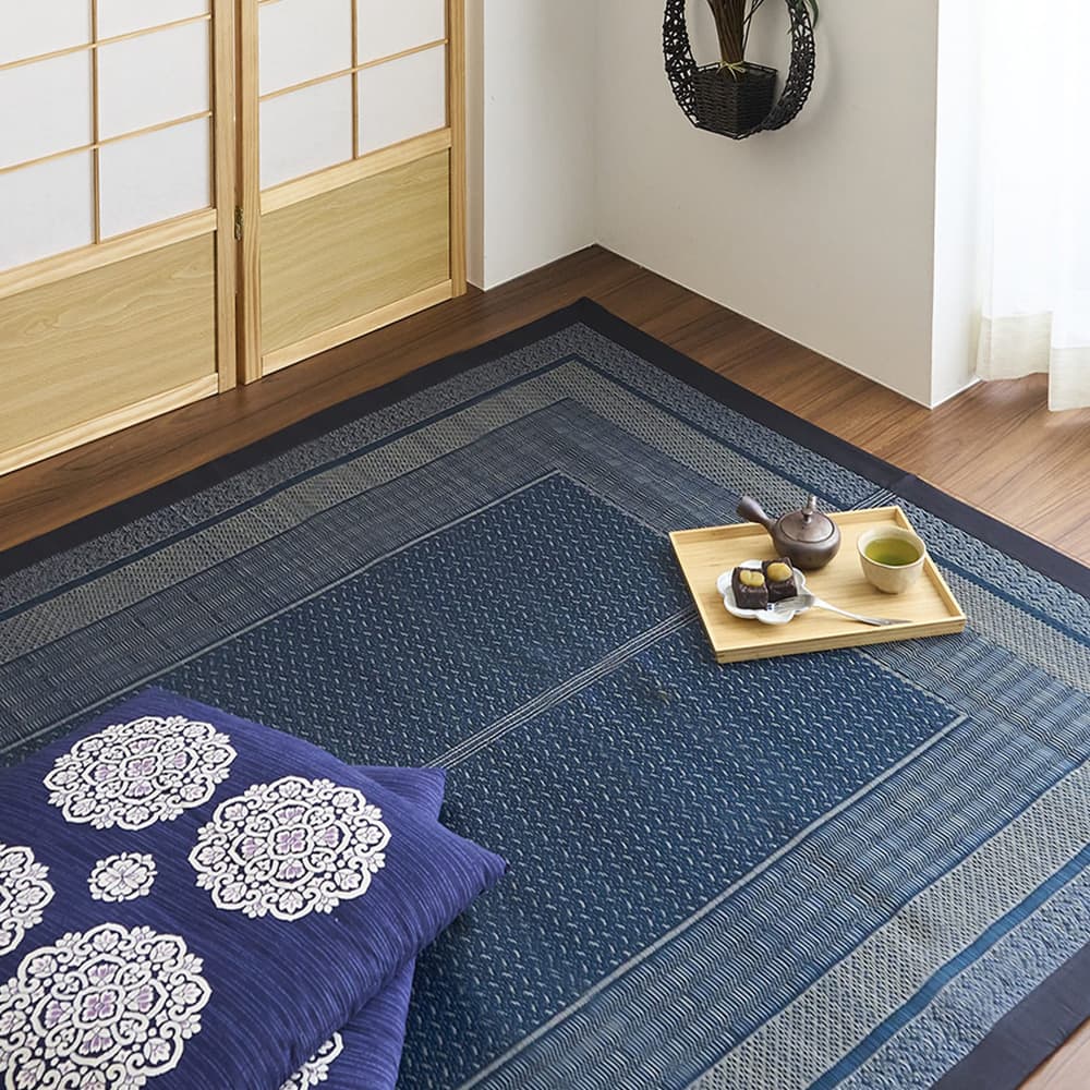 和室はもちろん、アジアンテイストのインテリアにも自然に馴染んでくれそうな、モダンなボックス柄のい草ラグ。現代のライフスタイルにも取り入れやすい一枚です。