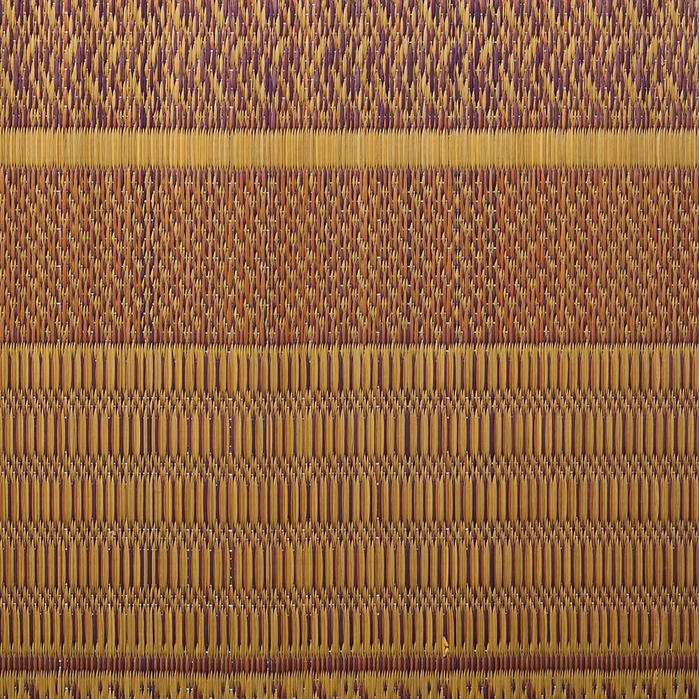国産い草だけを使用し、縁は綿で仕上げた日本製の上質ない草ラグ。そこにモダンムードたっぷりのデザインを「紋織り」と呼ばれる技法で繊細に表現しました。い草本来の味わいと、モダンデザインのいいとこどりをした1枚です。