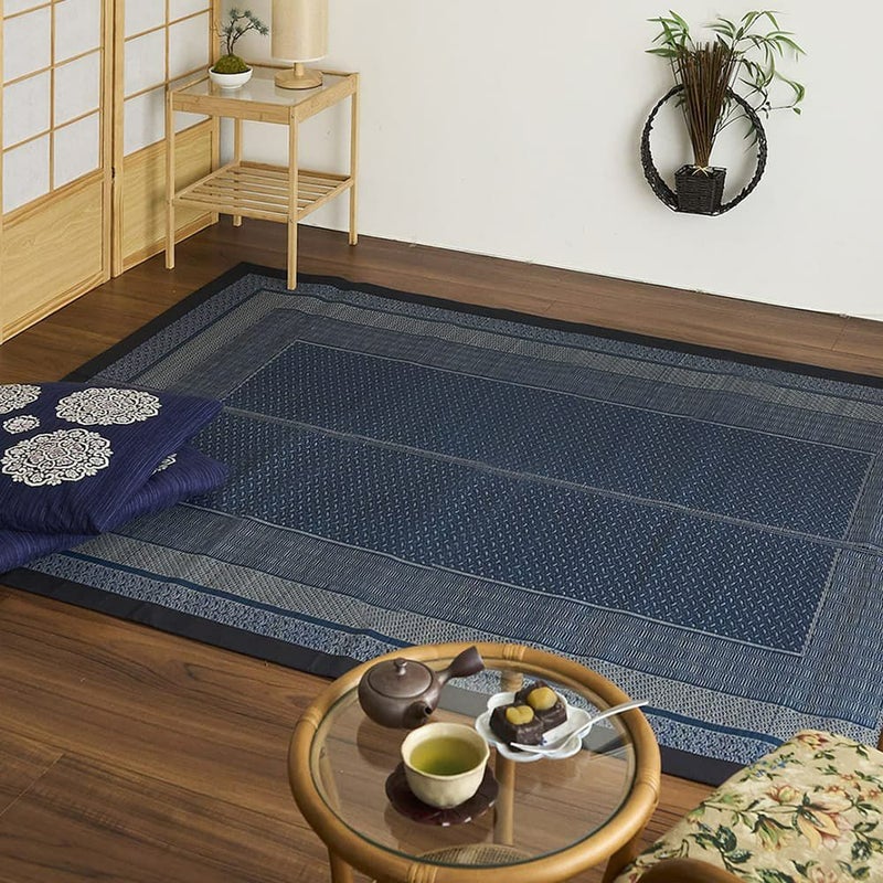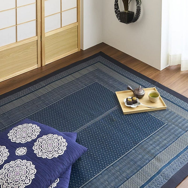 和室はもちろん、アジアンテイストのインテリアにも自然に馴染んでくれそうな、モダンなボックス柄のい草ラグ。現代のライフスタイルにも取り入れやすい一枚です。