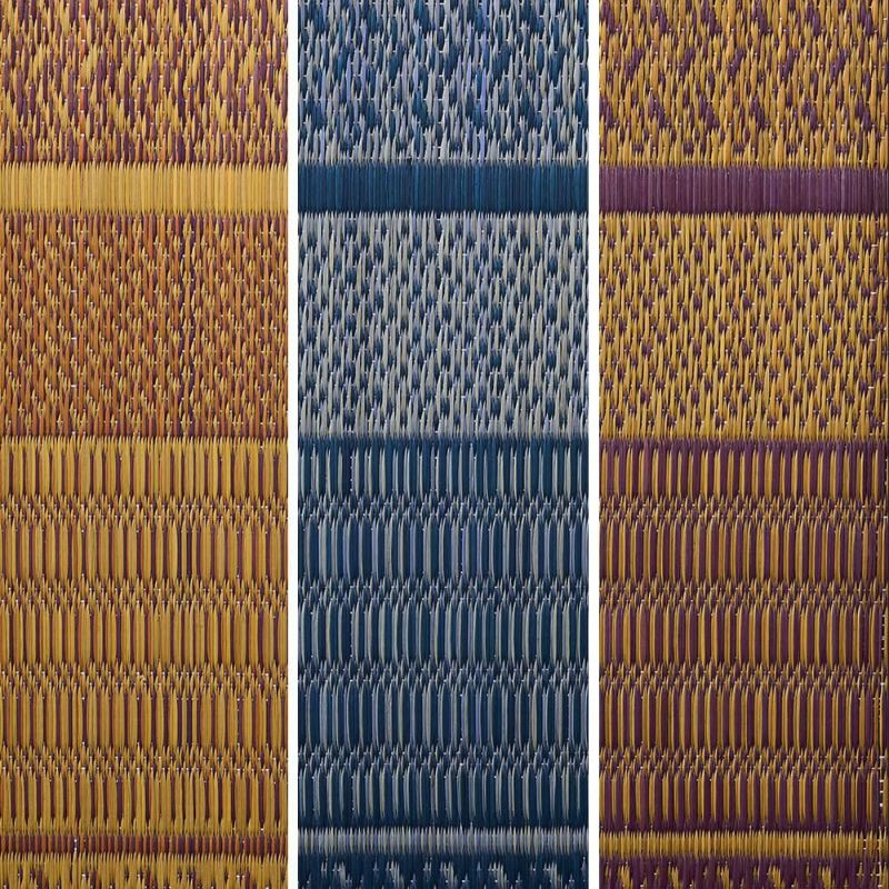 絵柄がくっきり表現できる「紋織り」という技法で織られたい草ラグ。奥深い色合いが表現された3色からお選びください。