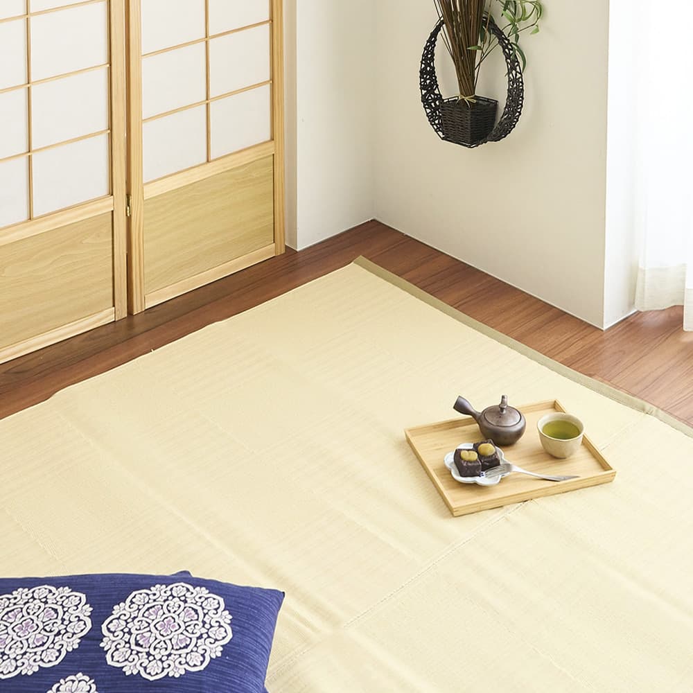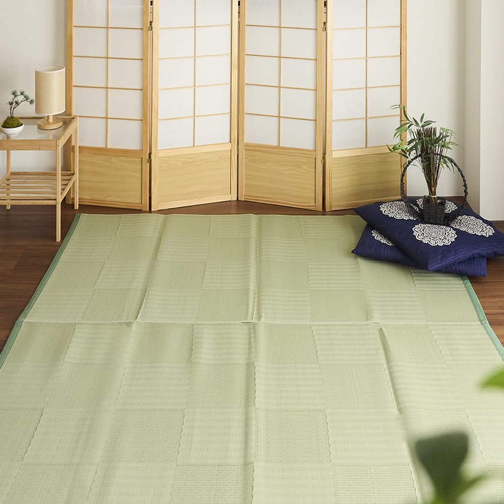 ポリプロピレン素材でい草風の【リリーフ】はアウトドアの雰囲気も併せ持ちます!お手入れ簡単で扱いやすいので、手軽に取り入れられる和の雰囲気をお楽しみください♪