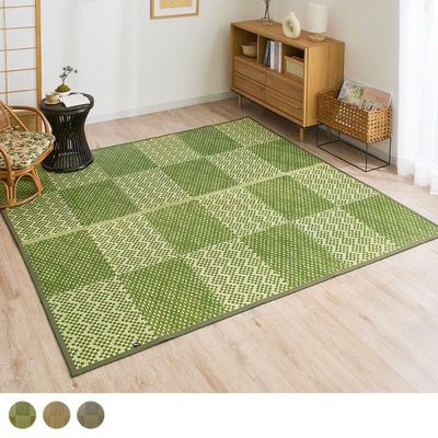 調湿効果が梅雨のじめじめ感を解消し、さらっとした肌触りが暑いお部屋の対策にも活躍するい草ラグ。