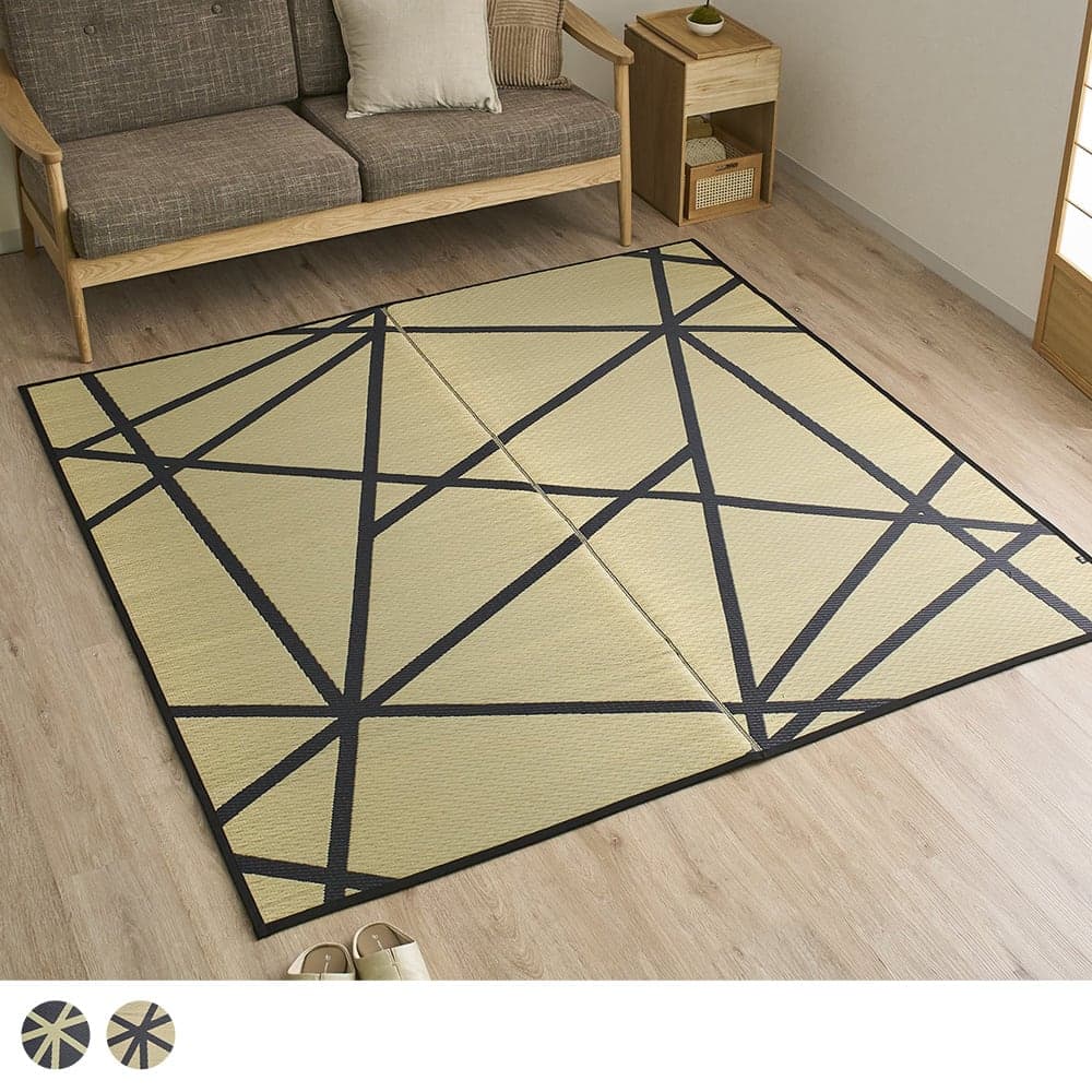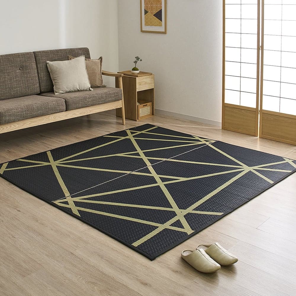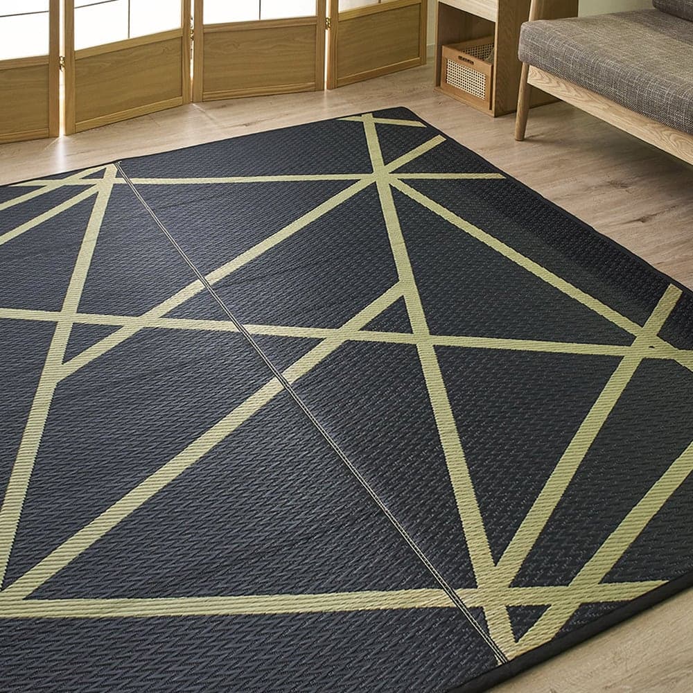 幾何学柄のい草ラグ