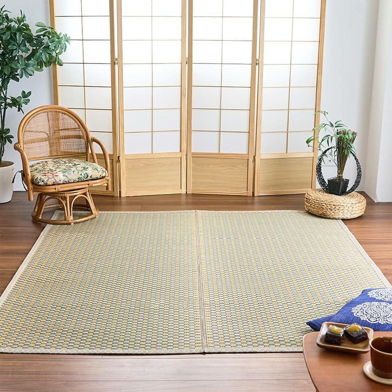 調湿効果が梅雨のじめじめ感を解消し、さらっとした肌触りが暑いお部屋の対策にも活躍するい草ラグ。