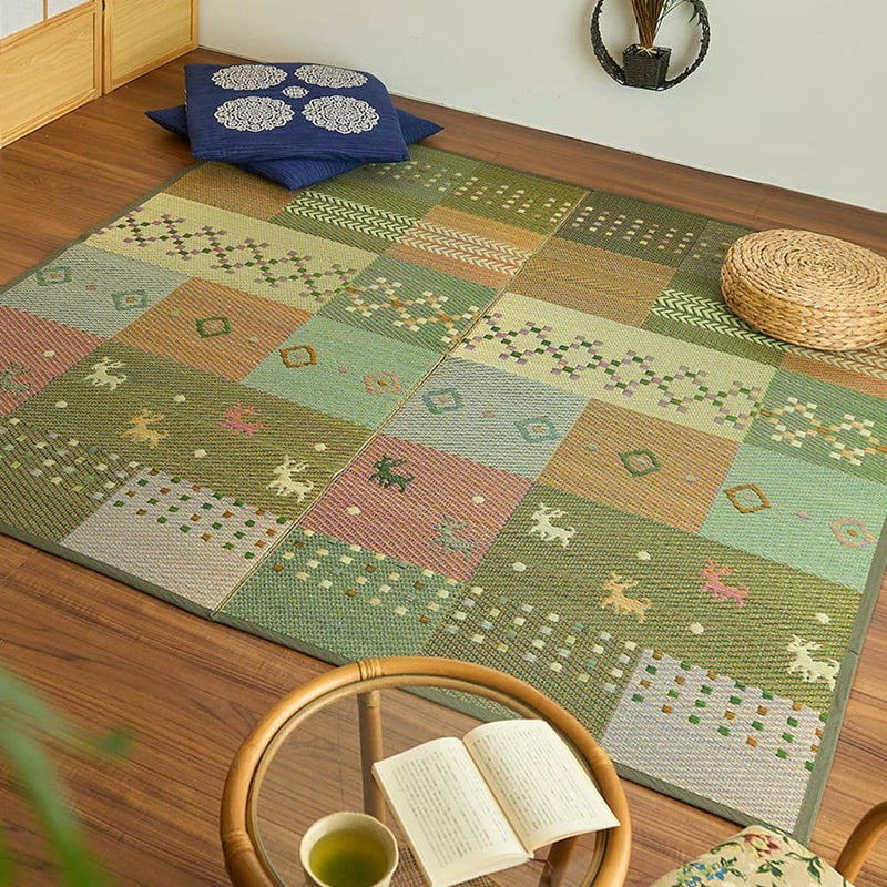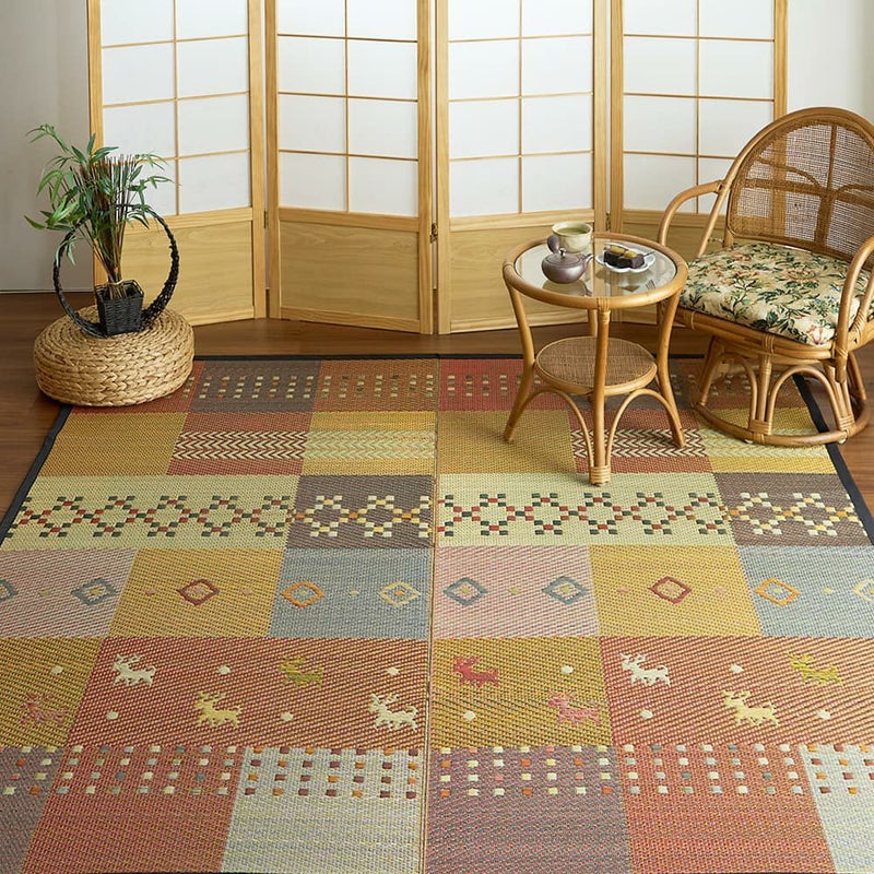 ギャッベ柄がお部屋を明るく仕上げてくれるい草ラグ
