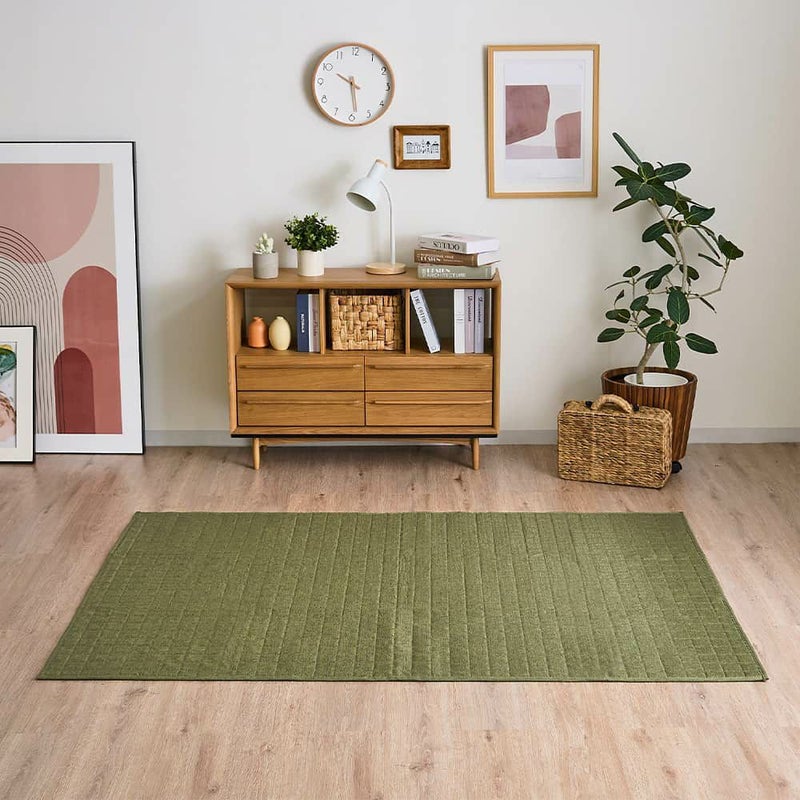 床暖房やホットカーペットの上からでも使えるので、寒い季節も暖かく過ごせるラグです。サラッとした表面の生地は、夏やじめじめする季節も快適に使えます。