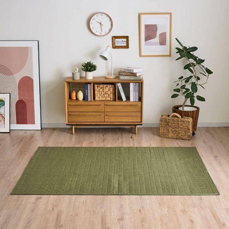 調湿効果が梅雨のじめじめ感を解消し、さらっとした肌触りが暑いお部屋の対策にも活躍するい草ラグ。