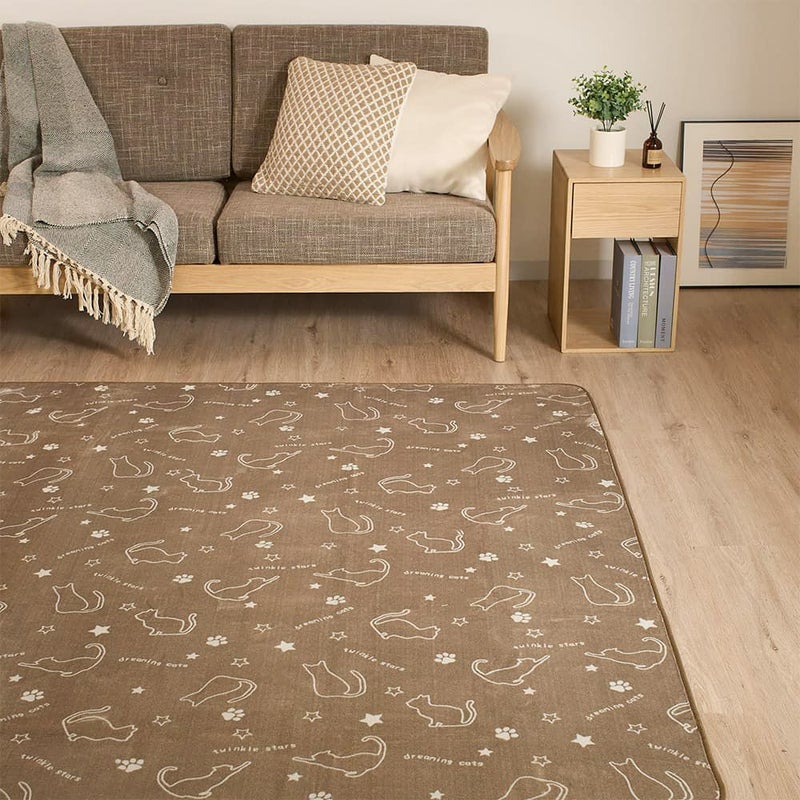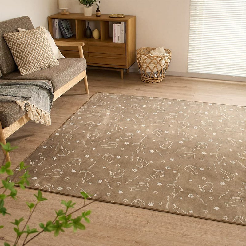 ねこ好きにはたまらない♪ふんわりやさしいフランネルラグ ちょこんと座るねこちゃんが癒しの空間へ