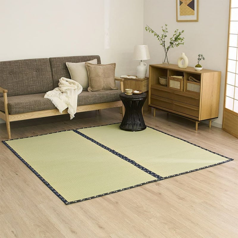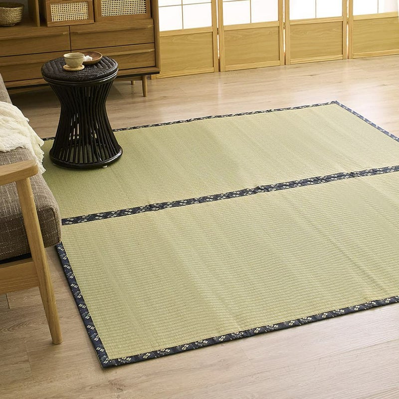 さりげなく入った縁のデザインがおしゃれな国産い草ラグ