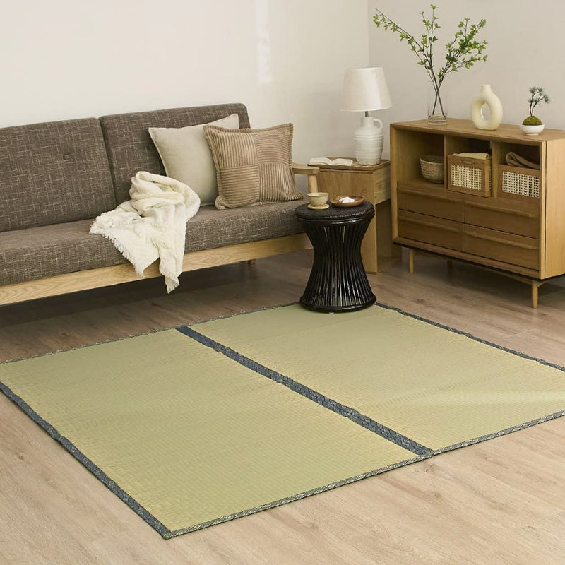 調湿効果が梅雨のじめじめ感を解消し、さらっとした肌触りが暑いお部屋の対策にも活躍するい草ラグ。
