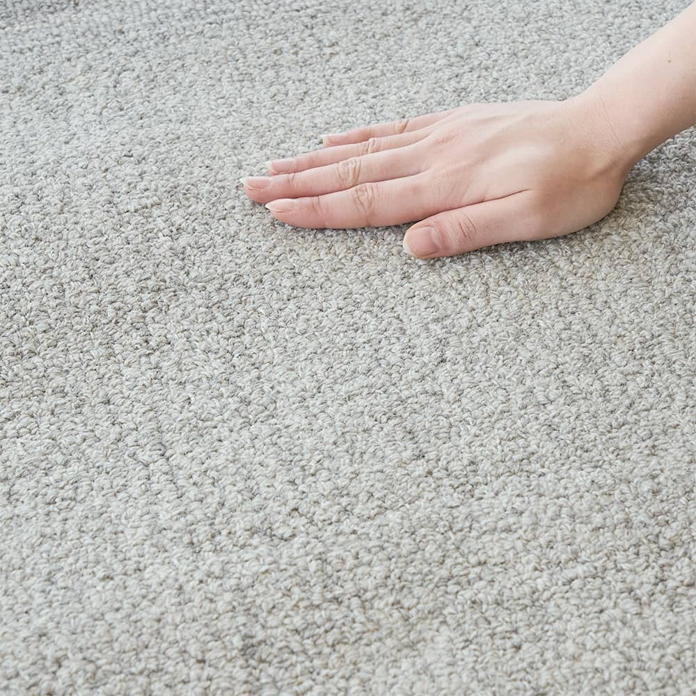 吸湿性のある天然素材のウール(羊毛)で織られているので、湿度の高いジメジメとした夏でもさらりと快適な肌触り。また、冬のフローリングの冷たさも防いでくれるのでオールシーズンご愛用いただけます。