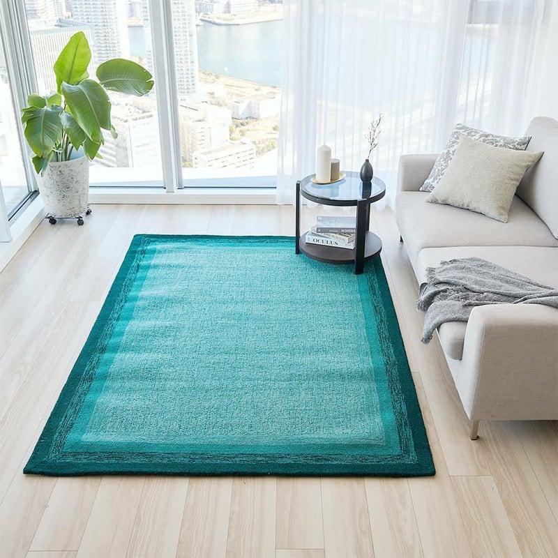 フチからグラデーションのように色が変わるモダンなボックス柄。 彩度が低い落ち着いたトーンは個性を感じつつも控えめな印象で、他の家具を引き立てることができるので、デザイナーズ家具などを取り入れたこだわりの空間づくりにもぴったりです◎