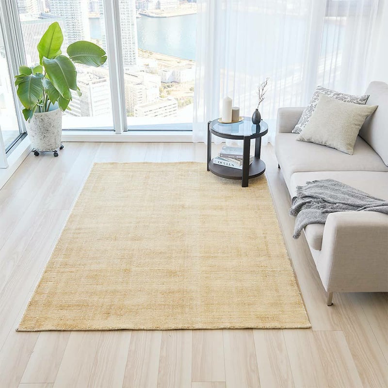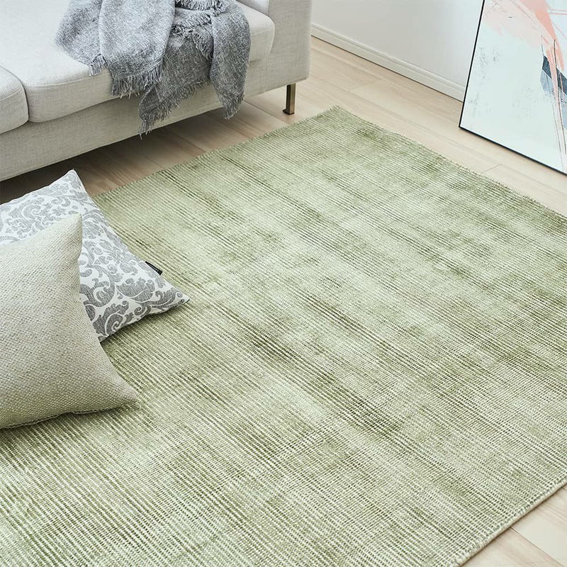 一見無地のように見えますが、さりげない細かなストライプデザインが空間に広がりを感じさせ、お部屋を広く見せてくれる効果も◎手織りのあたたかみと、絶妙なニュアンスカラーも主張し過ぎず、さり気ないオシャレ感が嬉しい1枚です。