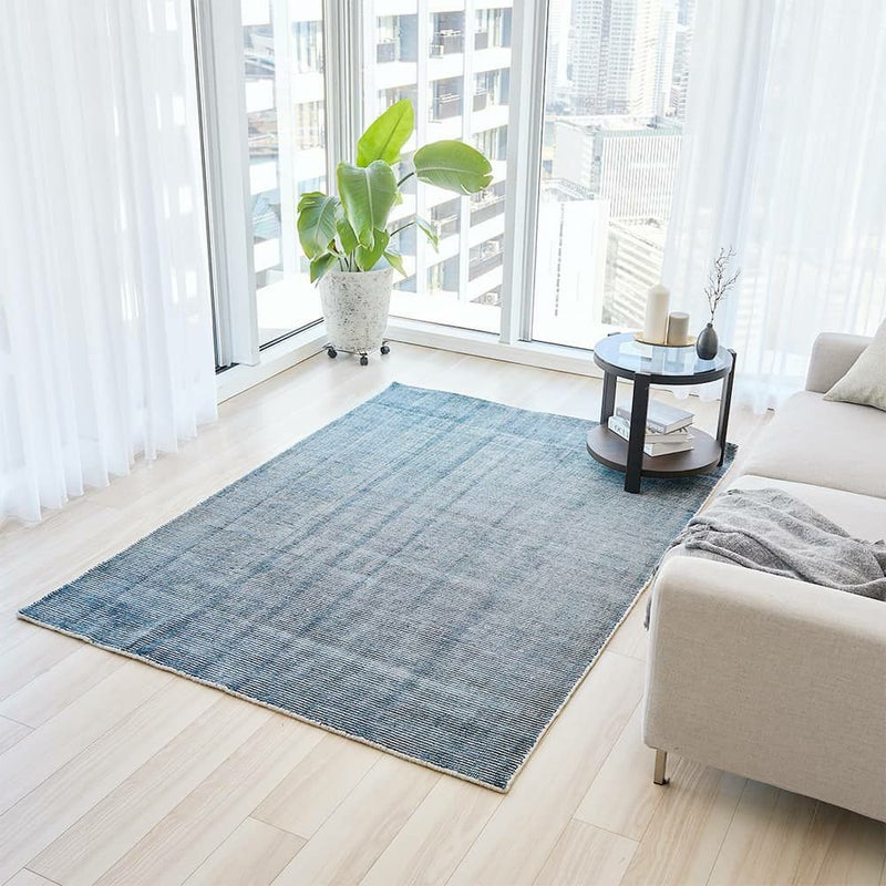 熟練の職人が機織り機を使って手作業で製作する手織りラグ。繊細な編み込み技術による豊かな表情が空間に優しいアクセントを添えてくれます。
