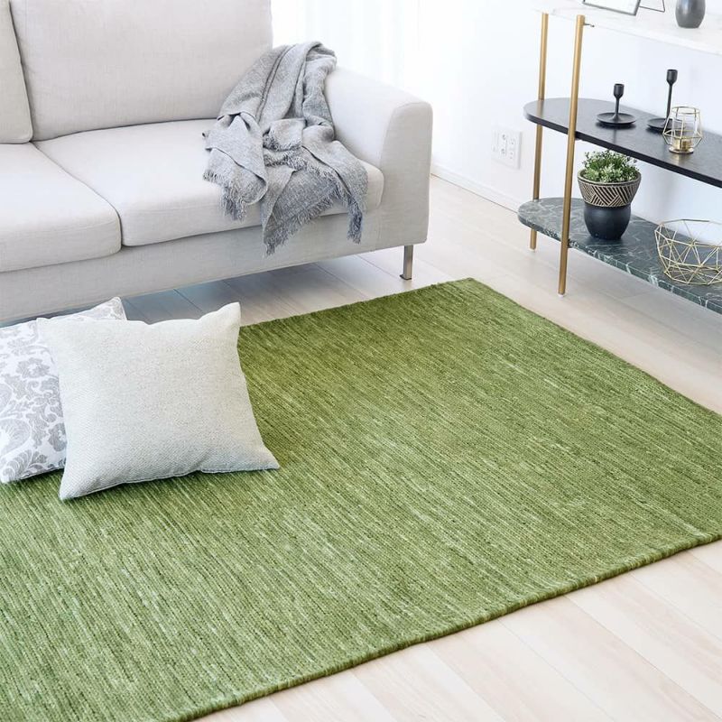 調湿効果が梅雨のじめじめ感を解消し、さらっとした肌触りが暑いお部屋の対策にも活躍するい草ラグ。