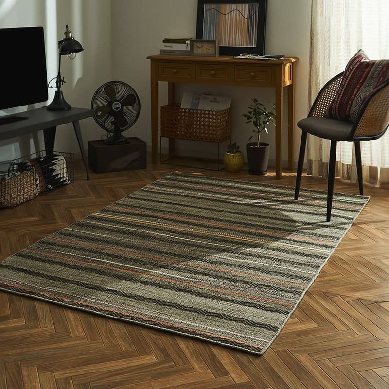 伝統と職人技が融合したインド綿ラグ。シンプルながら力強いデザインが男前なかっこいい空間に。男らしさと洗練さを両立させた、ワイルドかつ上質なラグで、あなたの空間にさらなる魅力をプラス。大人カラーのグレーの色味で、今のお部屋をもっとかっこよく。