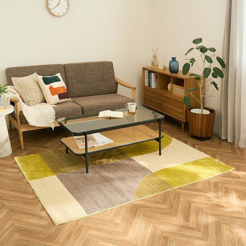 曲線を活かしたデザインと優しくポップな色使いの柔らかな雰囲気が魅力的なラグ。柔らかな雰囲気に包まれて自然と心が和らぐ穏やかな時間が過ごせそう。