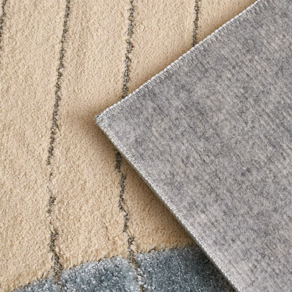 裏面には不織布加工が施されており、滑りやすいフローリングのお部屋に敷いても床が傷つきにくく安心仕様。また、不織布は通気性も優れており、ラグと床の間に湿気がたまりにくくカビが生えにくいのも嬉しいポイントです。