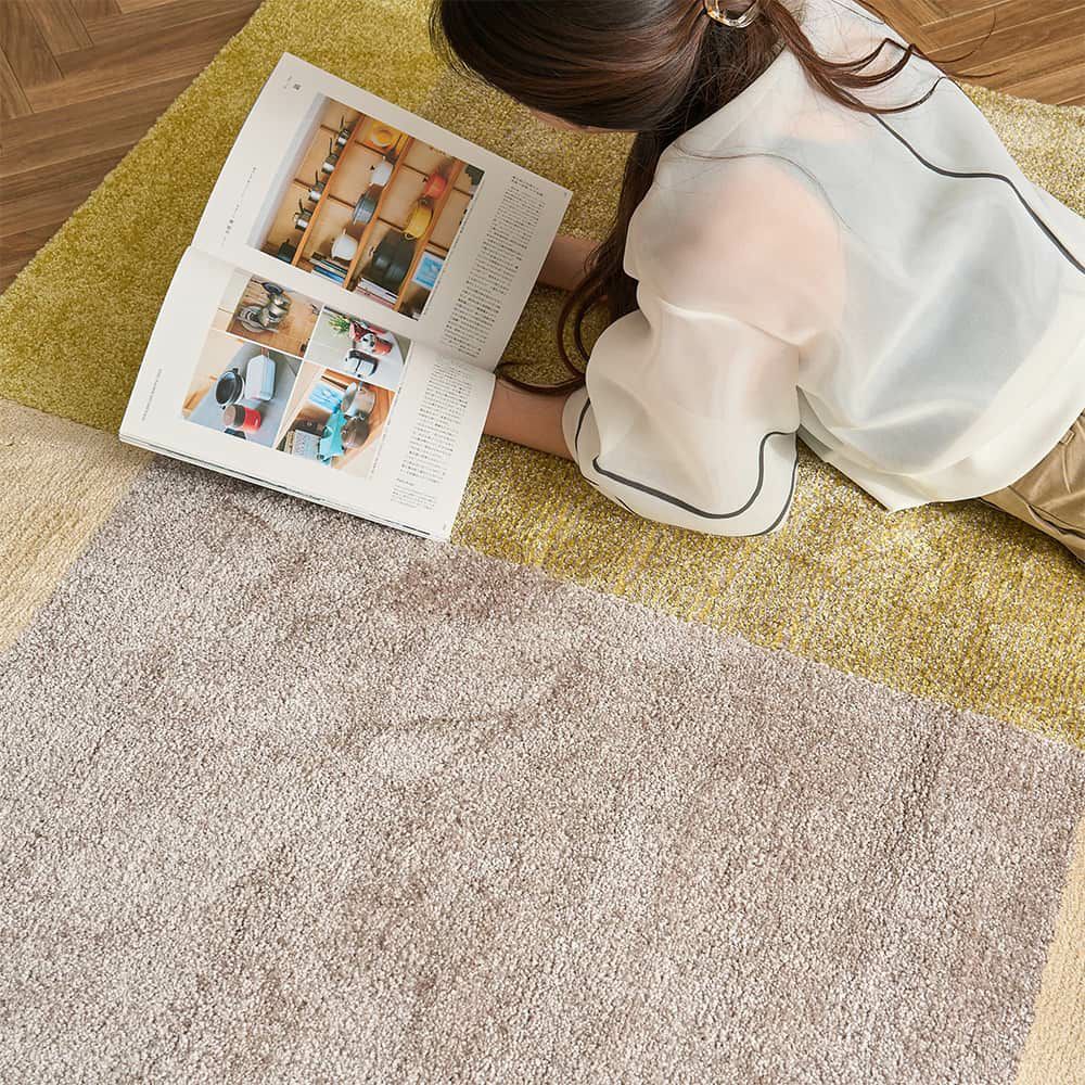 うっとりするような滑らかな触り心地が魅力のラグ。足触りが気持ち良く、1年中素足で歩きたくなるラグです。
