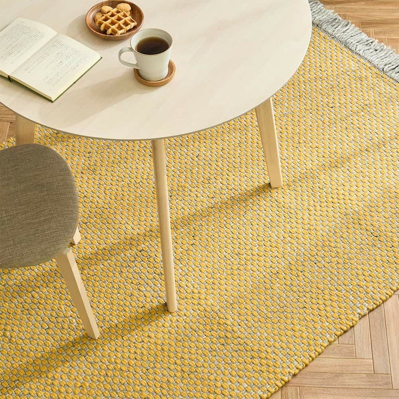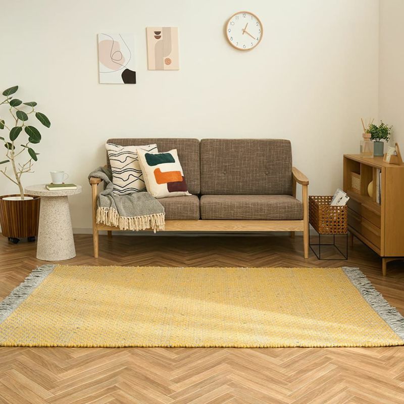 他の織り方と比べても耐久性の高い平織りのラグなので、テーブルや椅子をずらしても形が崩れにくく、綺麗に風合いを保つことができのも魅力の一つ。お気に入りのインテリアを摩擦を気にせず、自由にコーディネートを楽しんでみてはいかがでしょうか。