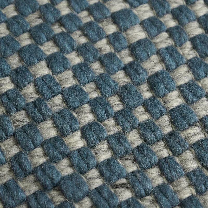 平織りのざっくりと織られた質感と織りの格子状の織り目の風合いが魅力的なラグ。ウール100%だから感じる事の出来る風合いをお楽しみいただけます。