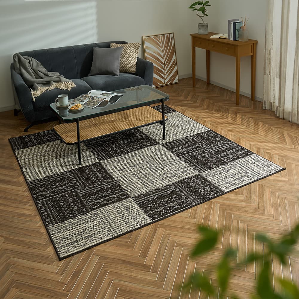 調湿効果が梅雨のじめじめ感を解消し、さらっとした肌触りが暑いお部屋の対策にも活躍するい草ラグ。