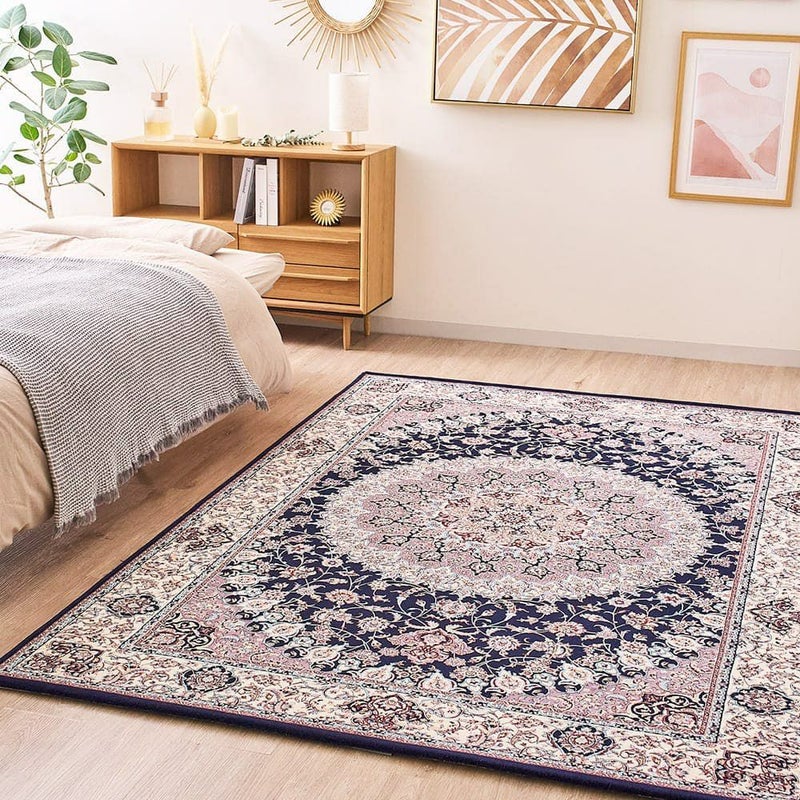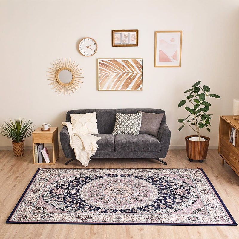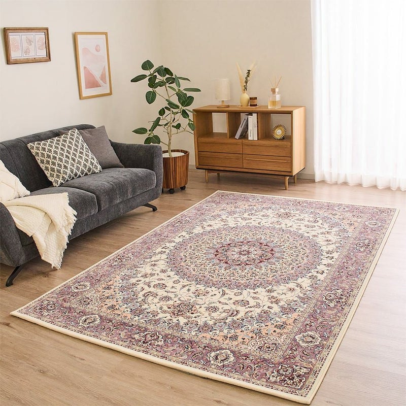 リビングだけでなく寝室にもぴったりです。寝室に敷くことで、上品で優雅な雰囲気を演出し、リラックスした空間を作り出します。朝起きた時や寝る前に足元に広がるメダリオン柄の美しさに癒されることでしょう。リビングや寝室など、どんなお部屋にも調和し、上品さと個性をプラスしてくれます。