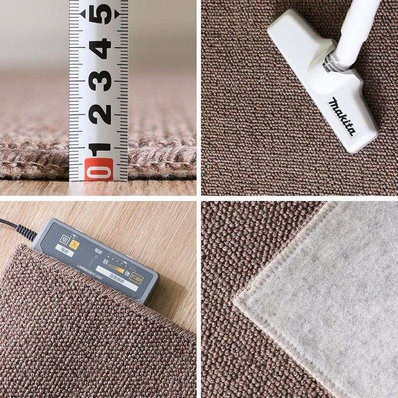 やや薄手でありながらもしっかりと作られたカーペット。パイルの毛先をカットし、ループになっていないので引っ掛かりにくく、肌ざわりもソフトです。ホットカーペットや床暖房にも対応○