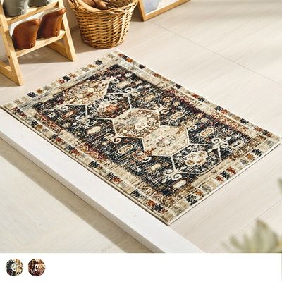 格式高いクラシックなパターンを、マルチカラーの色使いとダメージ調の加工で、現代風に仕上げました。トルコ製の玄関マットです。