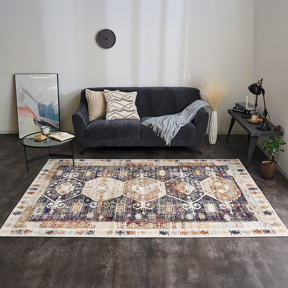 伝統を感じさせる民族調デザインのウィルトン織ラグが、在庫限りのアウトレット価格で新入荷!
