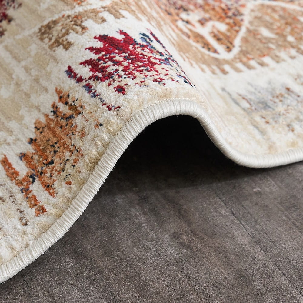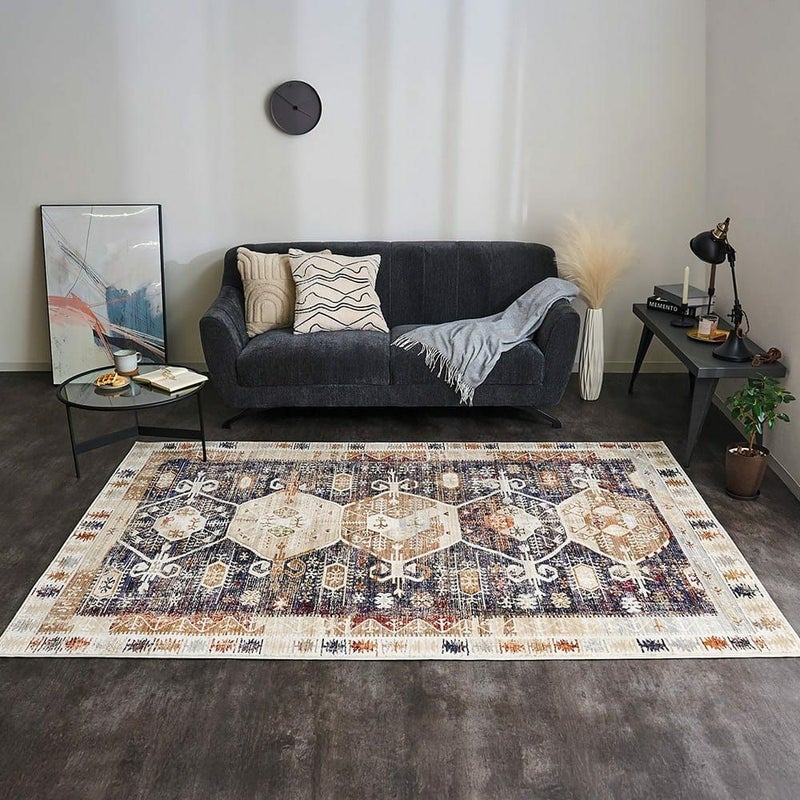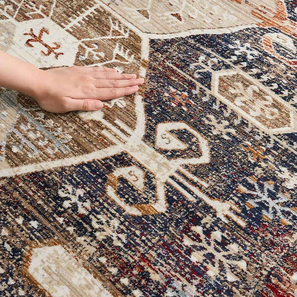 多色の糸を織り込み、ヴィンテージ感あふれるダメージ風デザインを表現しました。この1枚でセンスが際立つおしゃれな空間に。耐久性に優れたウィルトン織と、30万ノットの密度による程よい柔らかさが、日常使いにもぴったりです。