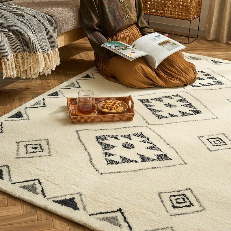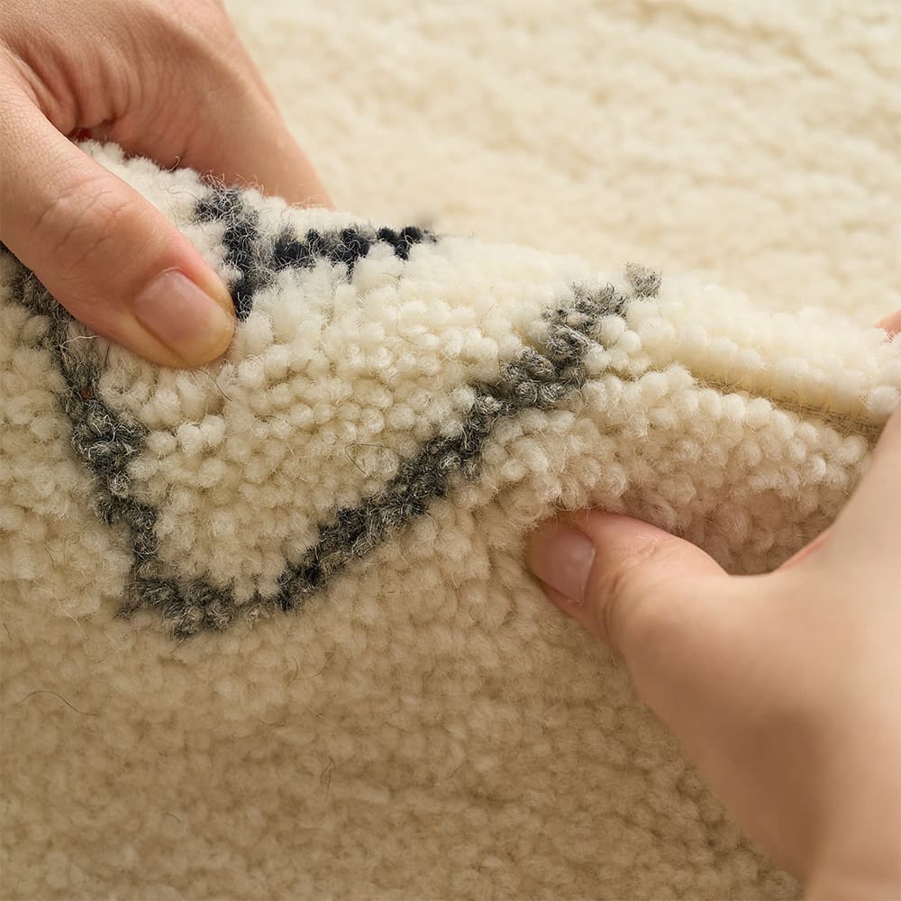 ウール100%のモコモコの肌触りで、ホッコリくつろぎの時間。お部屋に敷けば、落ち着く癒しの空間に。異国情緒あふれる雰囲気に包まれながらいつもよりちょっと贅沢なリラックスタイムを過ごせるはず。