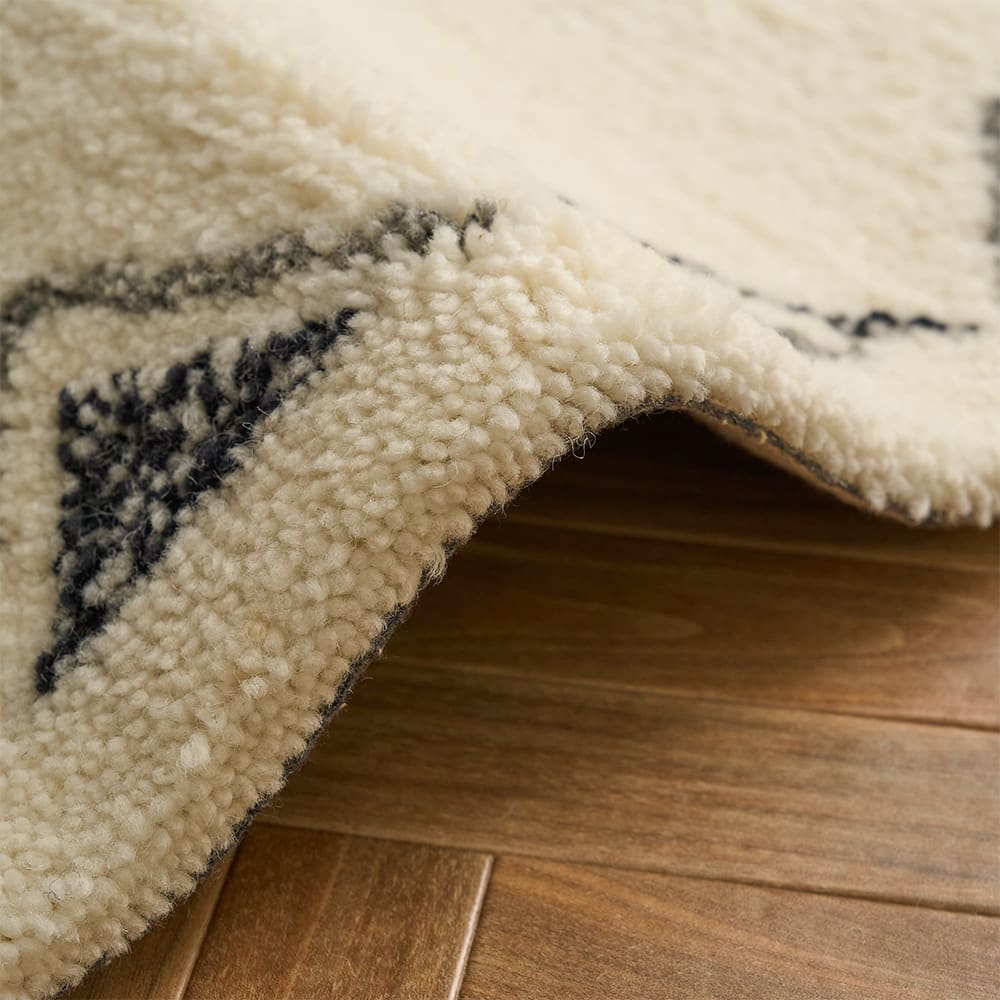 密度の詰まった仕上がりで底付き感の感じない程よい厚み。ロボット掃除機も問題なくラグの上を通ることができ、忙しい日々のお掃除も清潔に保てることでしょう。