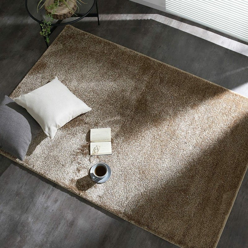 シンプルなデザインながらも、光を受けて美しく輝くラグは、いつもの日常にちょっとした贅沢をプラス。ブライト糸(光沢糸)による毛足のカット面と側面での色の変化により「高級感」が増します。手触りの心地よい糸をたっぷり使用した贅沢なラグでしつらえをアップグレードしてみませんか?
