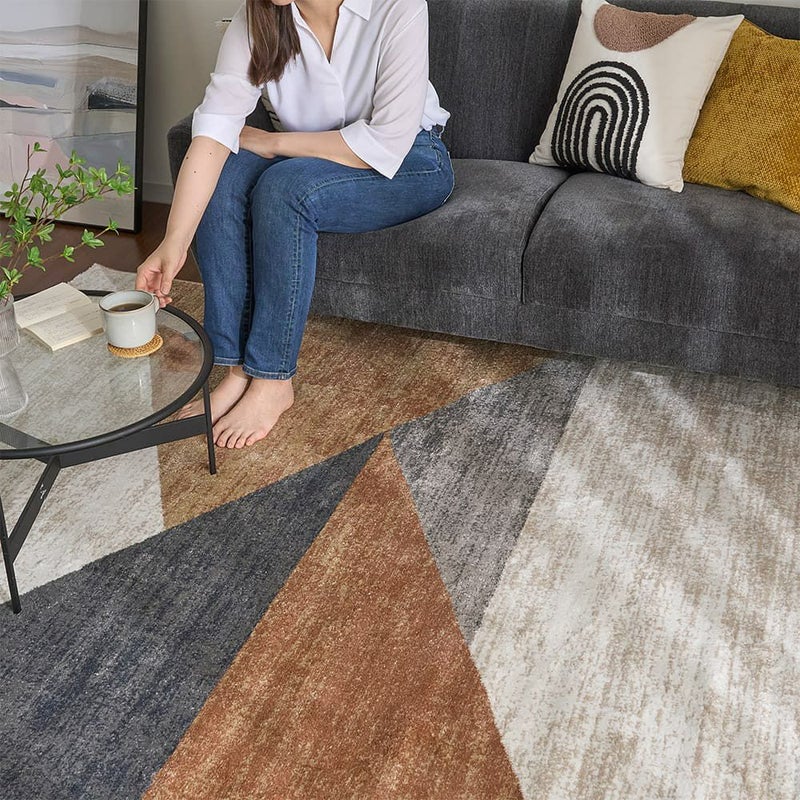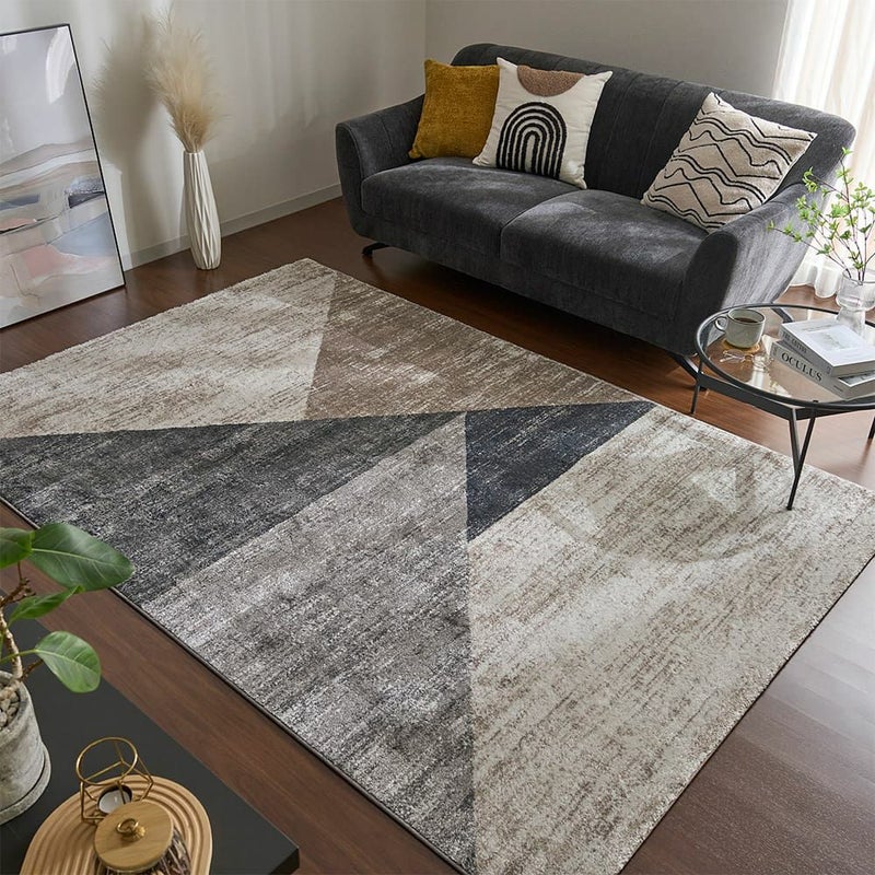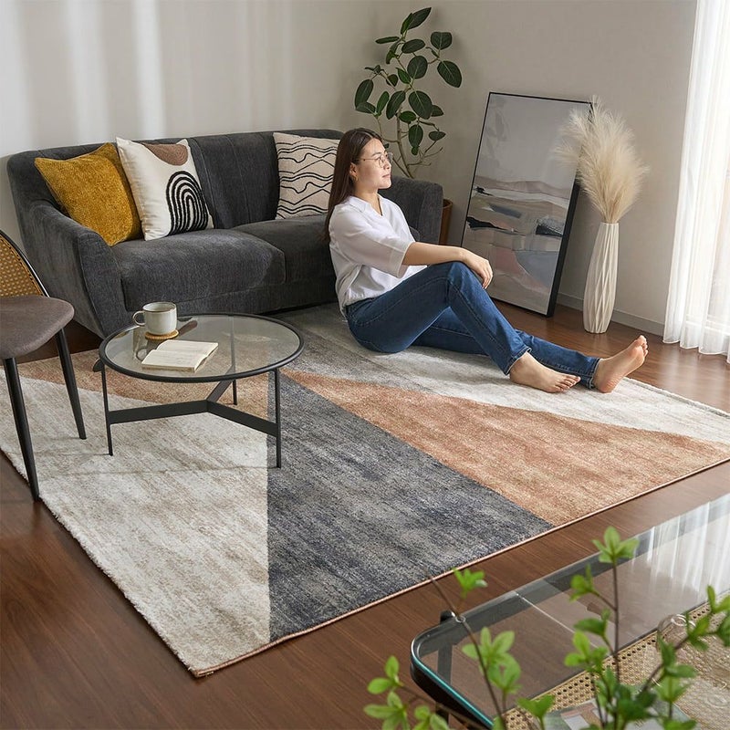無地では物足りない。でも派手すぎるのも落ち着かない…そんな日々の感覚に、そっと寄り添うデザインラグ。洗練されたスモーキーカラーと、控えめで美しい幾何学柄。空間を整えながら、素足にも心地よく、掃除も簡単。機能も、デザインも、心地よさも…きっとあなたの「これでいい」じゃなく「これがいい」に出会えるはず。