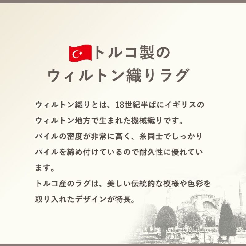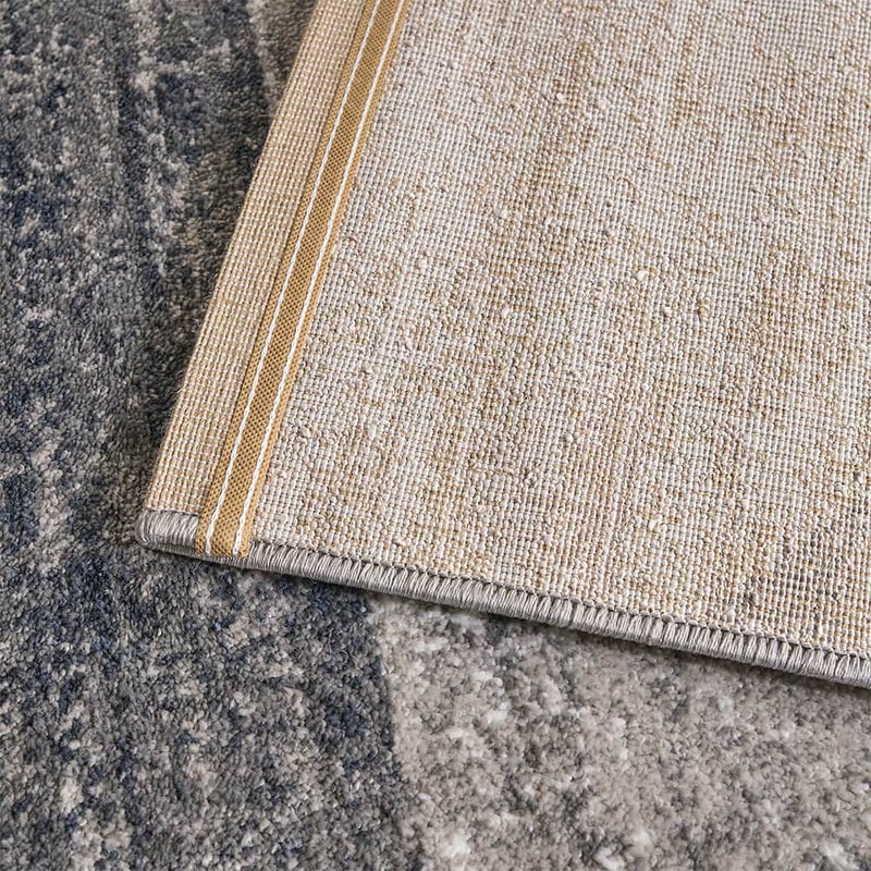 裏面には、ウィルトン織りならではのしっかりとした縫製仕上げを施しています。ラグの端まで美しく整えられ、見えない部分にまで「丁寧さ」を大切にする、大人の暮らしにぴったり。床にきちんと馴染む適度な厚みと重みで、ずれにくく安心感も◎目に触れない部分まで、静かに品よく支えてくれる一枚です。