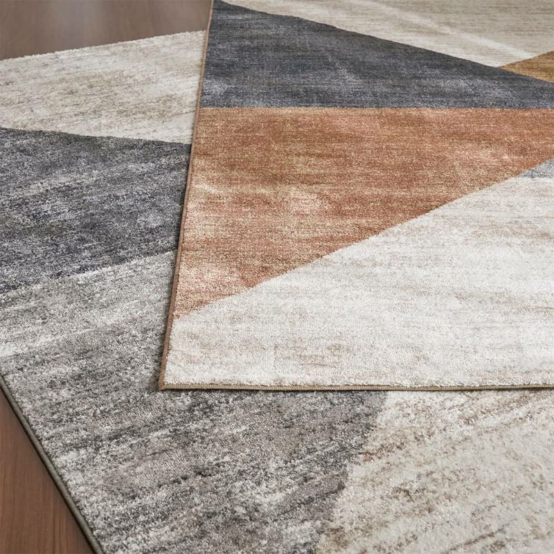 幾何学模様のリズムと、スモーキーカラーの奥行きが絶妙に重なり合うデザイン。派手すぎず、でも確かな存在感があり、空間に静かな凛としたムードを添えてくれます。ほんのりヴィンテージ感のある風合いは、コンクリートやウッド調の床にも自然と馴染み、モダンやインダストリアル、韓国インテリアとも好相性。「無地では物足りないけれど、落ち着いた印象は保ちたい」そんな繊細な感性を持つあなたに寄り添う一枚です。