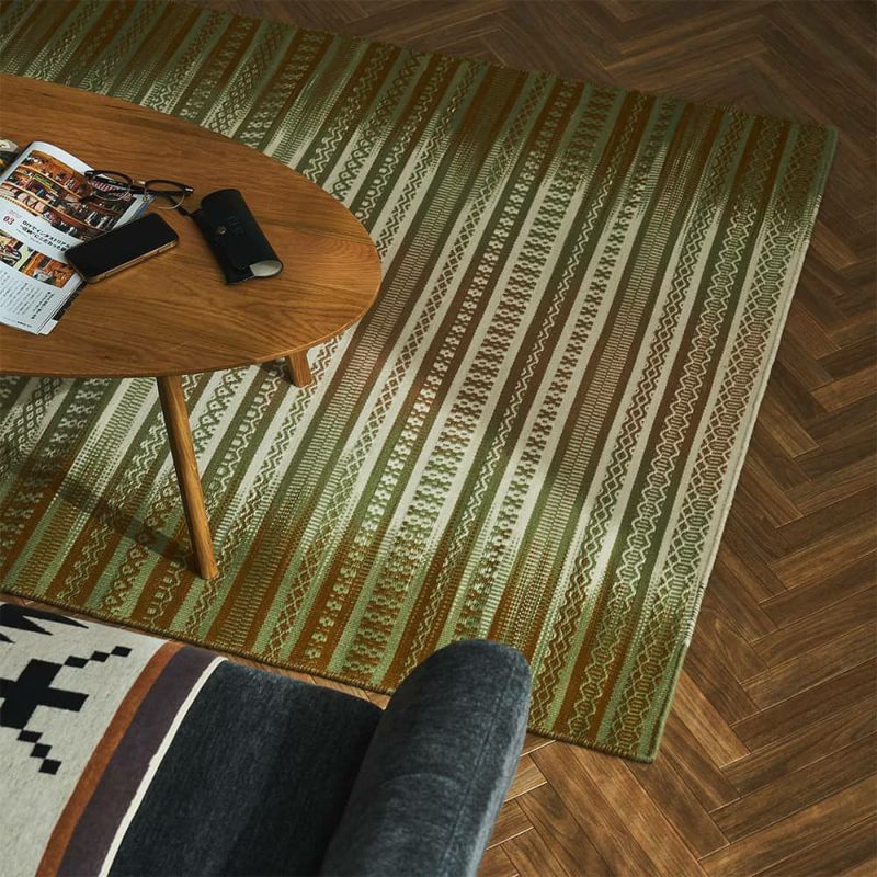 インテリアのスパイスにもなるネイティブなデザインは、いつもの床に敷くだけで空間がアップデート。とにかくおしゃれなお部屋にしたい!と考えているあなたにおすすめしたい1枚。魅力的なデザインとやさしい雰囲気を演出するウールラグで、家に帰りたくなるお部屋つくりへ。
