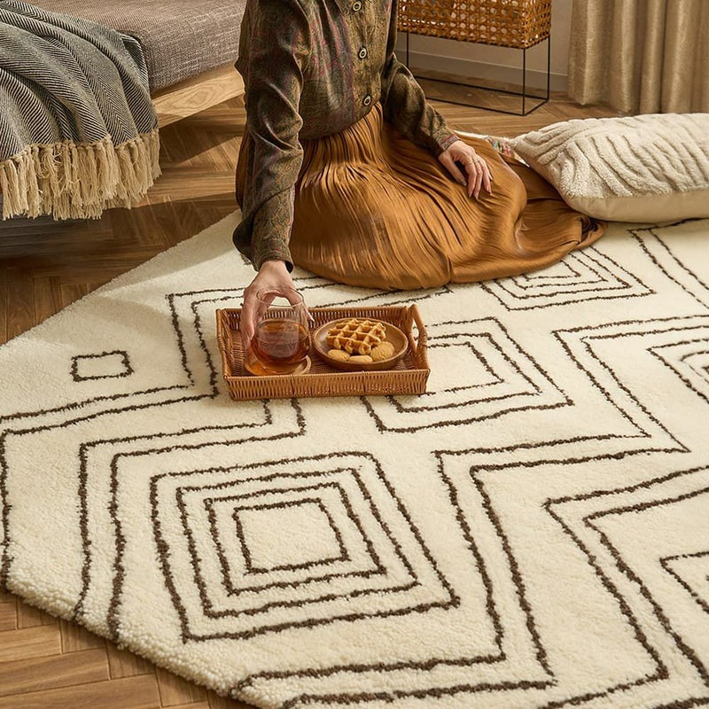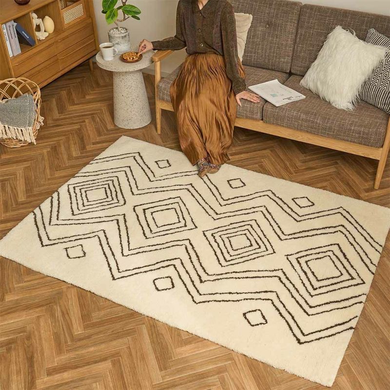 ウール100%のモコモコの肌触りで、ホッコリくつろぎの時間。お部屋に敷けば、落ち着く癒しの空間に。異国情緒あふれる雰囲気に包まれながらいつもよりちょっと贅沢なリラックスタイムを過ごせるはず。